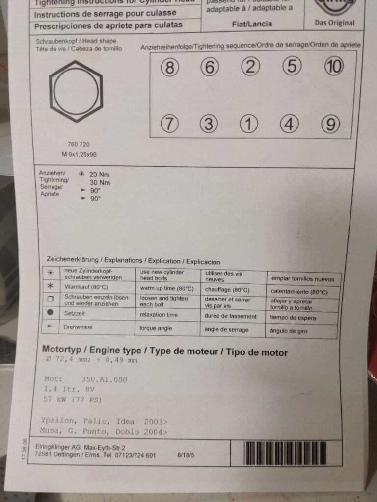 Montage/Anzugsdrehmomente sind wie bei der Seriendichtung. Da empfiehlt es sich jedoch die Drehmomente in den ersten Anzugsdurchgängen auf 30/40Nm zu erhöhen, alternativ den 2. Durchgang nach einer kurzen Setzzeit nochmal zu wiederholen. Kürzere Zylinderkopfschrauben werden nicht benötigt, denn die ‚Sacklöcher sind im Motorblock tief genug, diese sollten jedoch gut gereinigt sein, ebenso müssen die Gewinde und Schraubauflageflächen eingeölt werden.